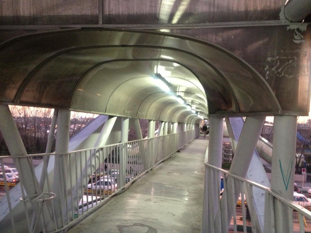 Die Sonne geht unter und ich entscheide mich für einen mehr oder weniger spontanen, gewiss jedoch intuitiven Spaziergang durch die Vororte, langsam aber sicher in Richtung Zentrum und nach einer Metrostation Ausschau haltend. Doch zunächst erregt eine extrem stylishe Fußgängerbrücke über eine der unzähligen verstopften mehrspurigen Schnellstraßen (auf denen es nahezu rund um die Uhr nur im Schneckentempo vorangeht) meine Aufmerksamkeit. Rolltreppen führen hinauf und wieder hinab und die gesamte Architektur begeistert mich. Nichts gegen die berühmte Rekordhalterin in Sachen Geilheit in Harlow aber diese Brücke fetzt!
