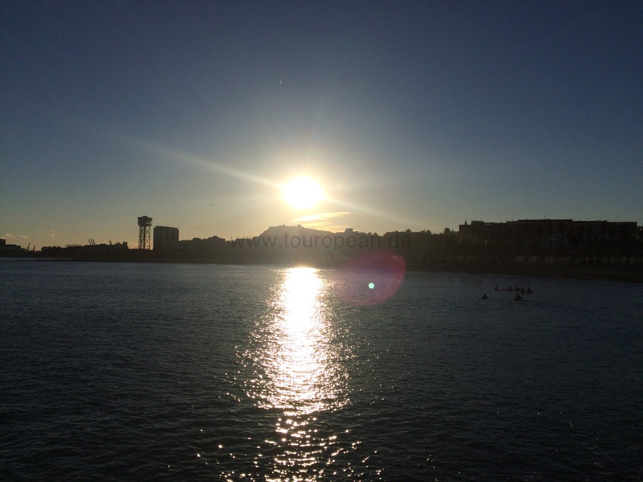 Am Strand setze ich mich in den Sand und schaue gedankenverloren aufs Wellenspiel. Ich genieße die Sonne und staune wenig später darüber, wie schnell die Zeit schon wieder vergangen ist. Mittlerweile sollte ich locker mein Quartier beziehen können also schlendere ich almählich wieder zurück, diesmal durch das reizvolle Viertel La Barceloneta (w) hindurch.